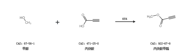 1.通过甲醇和丙炔酸合成丙炔酸甲酯,收率约65%;