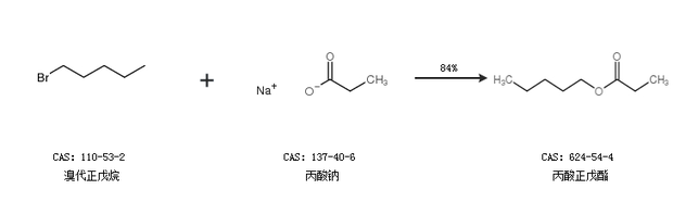1.通过溴代正戊烷和丙酸钠合成丙酸正戊酯,收率约84%;