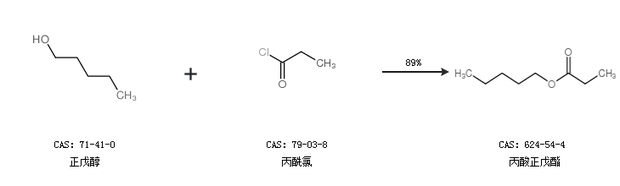 2.通过正戊醇和丙酰氯合成丙酸正戊酯,收率约89%;