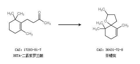 中文别名 茶香螺烷;茶香螺烷,2,6,10,10-四甲基-1-氧杂螺环「4,5」-6-癸烯;2,6,10,10-四甲基-1-氧杂螺[4.5]癸-6-烯;