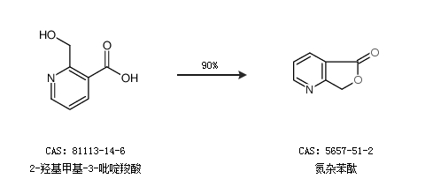 1.通过2-羟基甲基-3-吡啶羧酸合成氮杂苯酞,收率约90%;