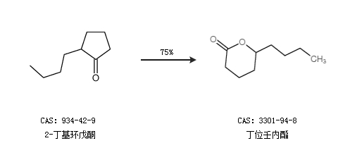 2.通过2-丁基环戊酮合成丁位壬内酯,收率约75%;
