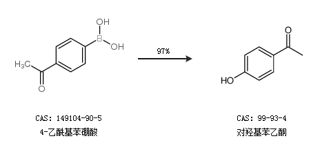 1.通过4-乙酰基苯硼酸合成对羟基苯乙酮,收率约97%;