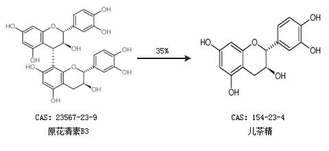 1.通过原花清素B3合成儿茶精,收率约35%;