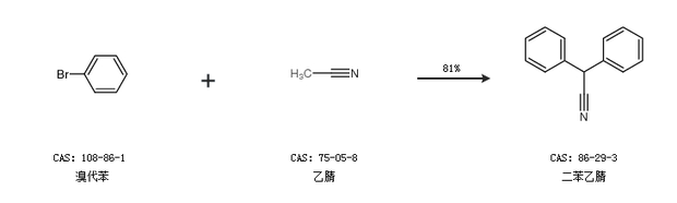 1.通过溴代苯和乙腈合成二苯乙腈,收率约81%;