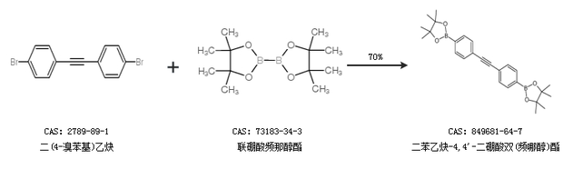 英文名称 4,4,5,5-tetramethyl-2-[4-[2-[4-(4,4,5,5-tetramethyl-1,3,2-dioxaborolan-2-yl)phenyl]ethynyl]phenyl]-1,3,2-dioxaborolane