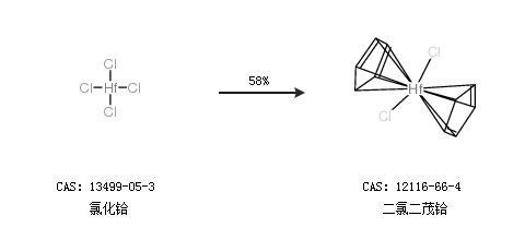 1.通过氯化铪合成二氯二茂铪,收率约58%;