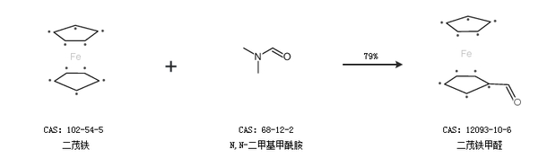 1.通过二茂铁和N,N-二甲基甲酰胺合成二茂铁甲醛,收率约79%;