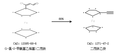 1.通过(1-氯-2-甲酰基乙烯基)二茂铁合成二茂铁乙炔,收率约88%;