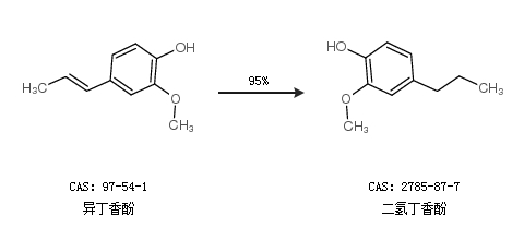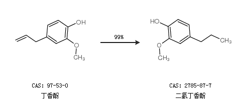 1.通过丁香酚合成二氢丁香酚,收率约99%;