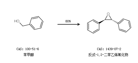 1.通过苯甲醇合成反式-1,2-二苯乙烯氧化物,收率约80%;