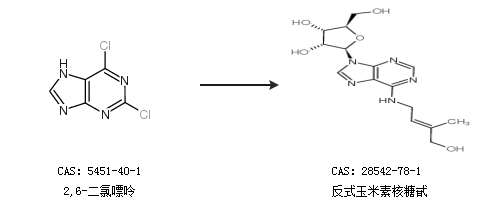 1.通过2,6-二氯嘌呤合成反式玉米素核糖甙