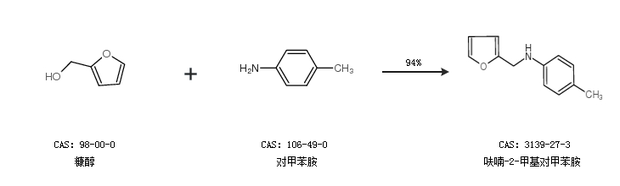 2.通过糠醇和对甲苯胺合成呋喃-2-甲基对甲苯胺,收率约94%;
