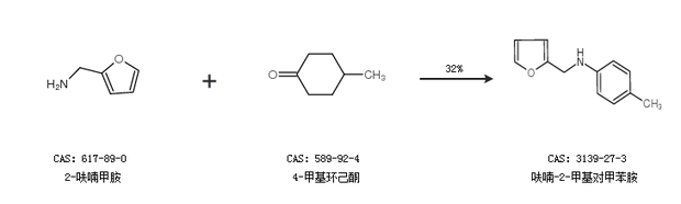 1.通过2-呋喃甲胺和4-甲基环己酮合成呋喃-2-甲基对甲苯胺,收率约32%;