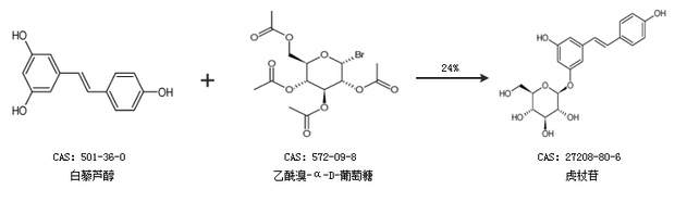 2.通过白藜芦醇和乙酰溴-α-D-葡萄糖合成虎杖苷,收率约24%;