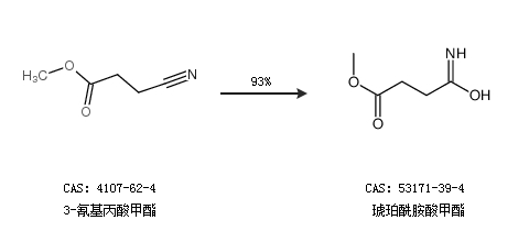 2.通过3-氰基丙酸甲酯合成琥珀酰胺酸甲酯,收率约93%;