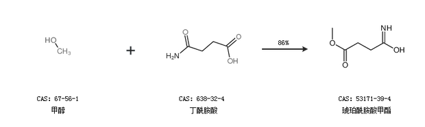 1.通过甲醇和丁酰胺酸合成琥珀酰胺酸甲酯,收率约86%;