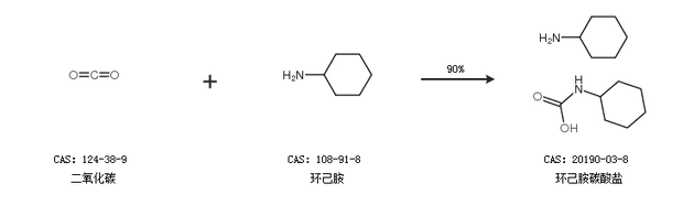 1.通过二氧化碳和环己胺合成环己胺碳酸盐,收率约90%;
