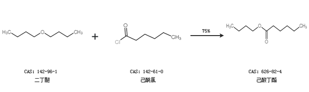 1.通过二丁醚和己酰氯合成己酸丁酯,收率约75%;