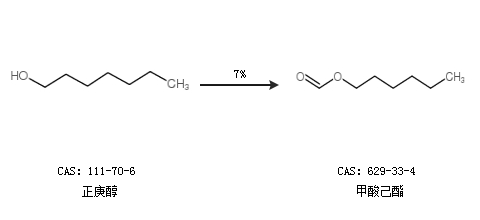 2.通过正庚醇合成甲酸己酯,收率约7%;
