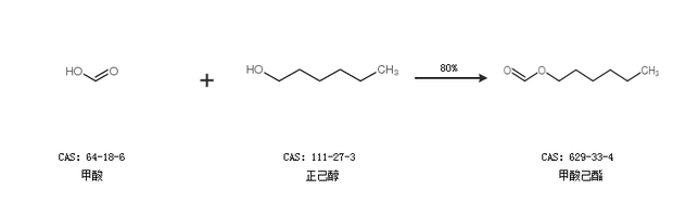 1.通过甲酸和正己醇合成甲酸己酯,收率约80%;