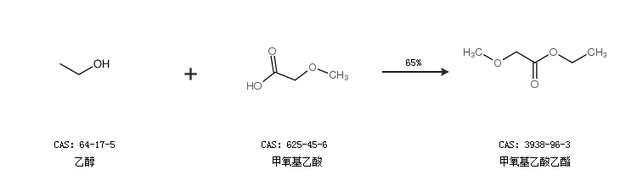 1.通过乙醇和甲氧基乙酸合成甲氧基乙酸乙酯,收率约65%;
