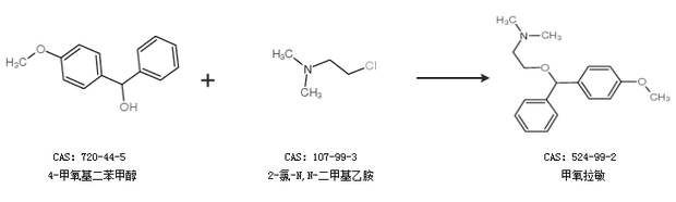 1.通过4-甲氧基二苯甲醇和2-氯-N,N-二甲基乙胺合成甲氧拉敏