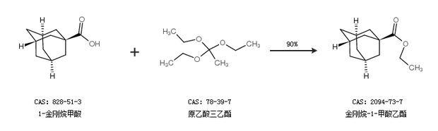 2.通过1-金刚烷甲酸和原乙酸三乙酯合成金刚烷-1-甲酸乙酯,收率约90%;