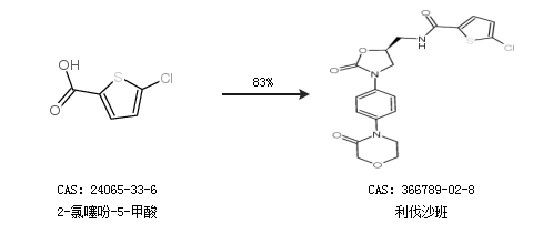 2.通过2-氯噻吩-5-甲酸合成利伐沙班,收率约83%;