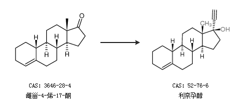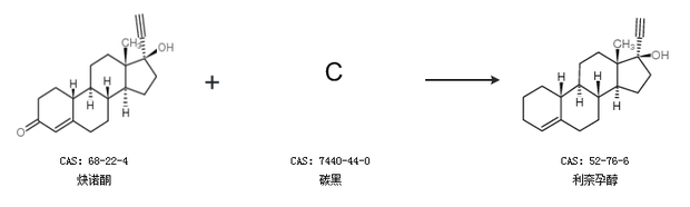 1.通过炔诺酮和碳黑合成利奈孕醇