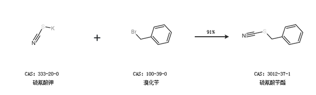 1.通过硫氰酸钾和溴化苄合成硫氰酸苄酯,收率约91%;