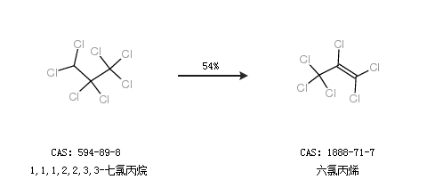 1.通过1,1,1,2,2,3,3-七氯丙烷合成六氯丙烯,收率约54%;