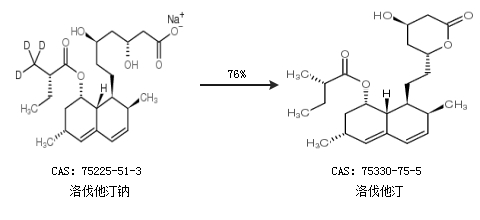 1.通过洛伐他汀钠合成洛伐他汀,收率约76%;