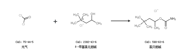 1.通过光气和β-甲基氯化胆碱合成氯贝胆碱