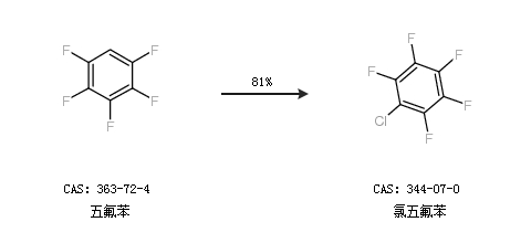 1.通过五氟苯合成氯五氟苯,收率约81%;