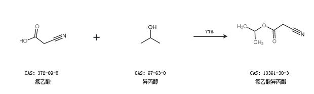 1.通过氰乙酸和异丙醇合成氰乙酸异丙酯,收率约77%;