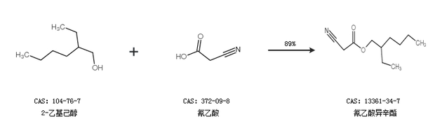 1.通过2-乙基己醇和氰乙酸合成氰乙酸异辛酯,收率约89%;