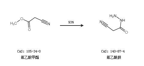 2.通过氰乙酸甲酯合成氰乙酰肼,收率约93%;