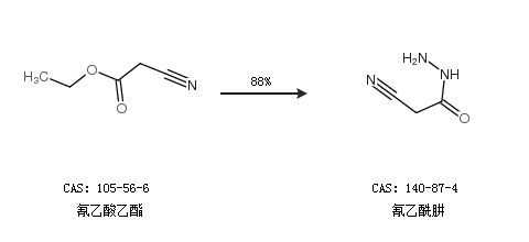 1.通过氰乙酸乙酯合成氰乙酰肼,收率约88%;