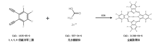 1.通过3,4,5,6-四氟邻苯二腈和无水醋酸锌合成全氟酞菁锌,收率约83%;