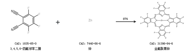 2.通过3,4,5,6-四氟邻苯二腈和锌合成全氟酞菁锌,收率约87%;