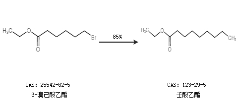 1.通过6-溴己酸乙酯合成壬酸乙酯,收率约85%;