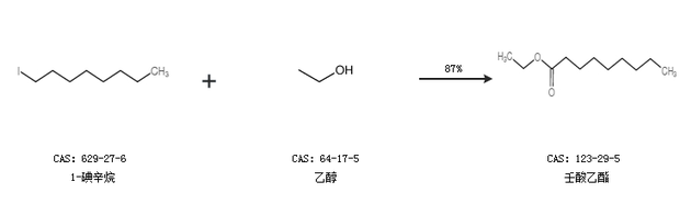 2.通过1-碘辛烷和乙醇合成壬酸乙酯,收率约87%;