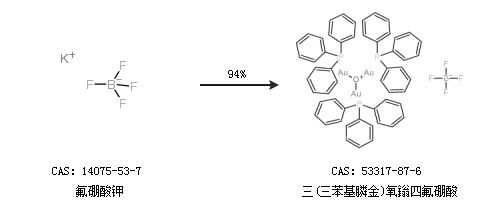 1.通过氟硼酸钾合成三(三苯基膦金)氧鎓四氟硼酸,收率约94%;