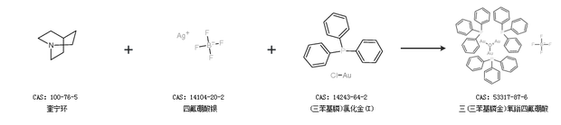 2.通过奎宁环、四氟硼酸银和(三苯基膦)氯化金(I)合成三(三苯基膦金)氧鎓四氟硼酸