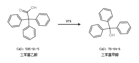 2.通过三苯基乙酸合成三苯基甲醇,收率约97%;