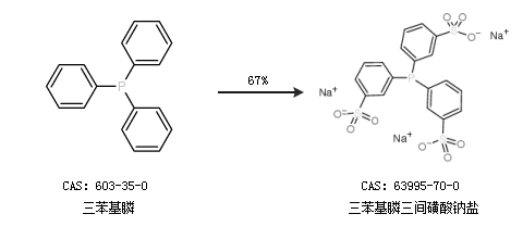 1.通过三苯基膦合成三苯基膦三间磺酸钠盐,收率约67%;