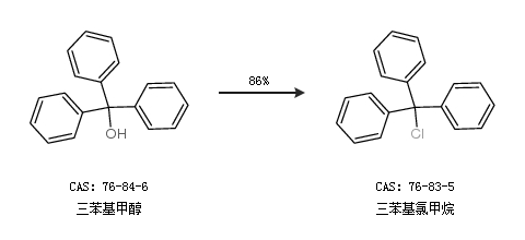 1.通过三苯基甲醇合成三苯基氯甲烷,收率约86%;