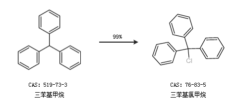 2.通过三苯基甲烷合成三苯基氯甲烷,收率约99%;