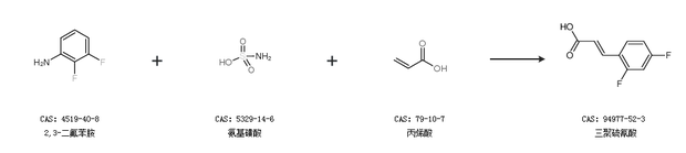 2.通过2,3-二氟苯胺、氨基磺酸和丙烯酸合成三聚硫氰酸